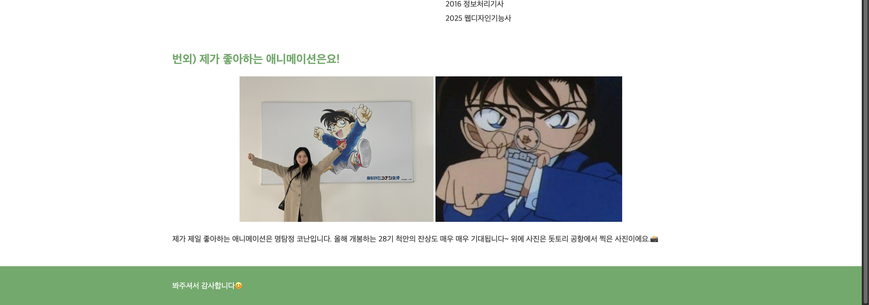 - <br> 태그 line break 약어로 줄을 나눈다는 뜻 html은 엔터 값을 인식하지 않기 때문에 br 태그로 줄 바꿈 해줌